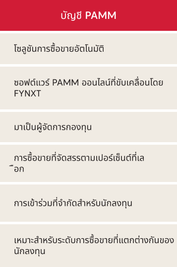 A PAMM (Percentage Allocation Management Module) เป็นวิธีการซื้อขายอัตโนมัติยอดนิยมที่ช่วยให้ผู้จัดการกองทุนสามารถจัดการหลายบัญชีจากบัญชีหลักของตนเองได้ ผู้จัดการบัญชี PAMM กระจายการซื้อขายตามเปอร์เซ็นต์ที่พวกเขาเลือก ทุกครั้งที่ผู้จัดการกองทุนทำกำไร นักลงทุนที่สมัครสมาชิกจะต้องจ่ายค่าธรรมเนียม