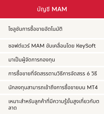 จัดการบัญชีนักลงทุนหลายบัญชีอย่างชาญฉลาดจากบัญชีเดียว ใช้ระบบการจัดการเงินระดับเฟิร์สคลาสที่ให้การตรวจสอบประสิทธิภาพโดยละเอียด และกระดานผู้นำที่แสดงกลยุทธ์การซื้อขายที่แตกต่างกัน